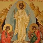 Воскре́сл еси́ от гро́ба, Всеси́льне Спа́се,/ и а́д ви́дев чу́до, ужасе́ся,/ и ме́ртвии воста́ша;/ тва́рь же ви́дящи сра́дуется Тебе́,/ и Ада́м свесели́тся,// и ми́р, Спа́се мо́й, воспева́ет Тя́ при́сно.
