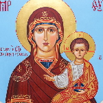 Апо́стол пропове́дание и оте́ц догма́ты/ Це́ркве еди́ну ве́ру запечатле́ша,/ я́же и ри́зу нося́щи и́стины, истка́нну от е́же свы́ше Богосло́вия,// исправля́ет и сла́вит благоче́стия вели́кое та́инство.