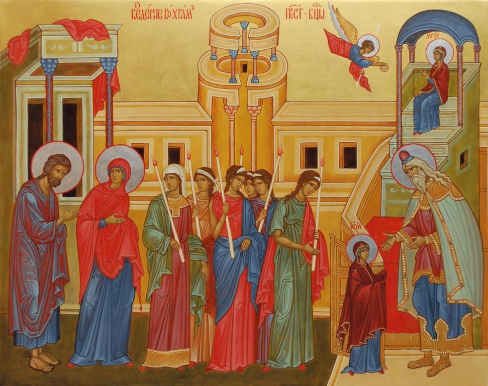 Сегодня Святая Церковь восхваляет «Ты – проро́ков пропове́дание, апо́столов сла́ва, и му́чеников похвала́, и всех земноро́дных обновле́ние, Де́во Ма́ти Бо́жия» - поклоняясь Пресвятой Богородице. Торжественен и чуден праздник, велико и спасительно таинство «Како Дев входит во Святая Святых».